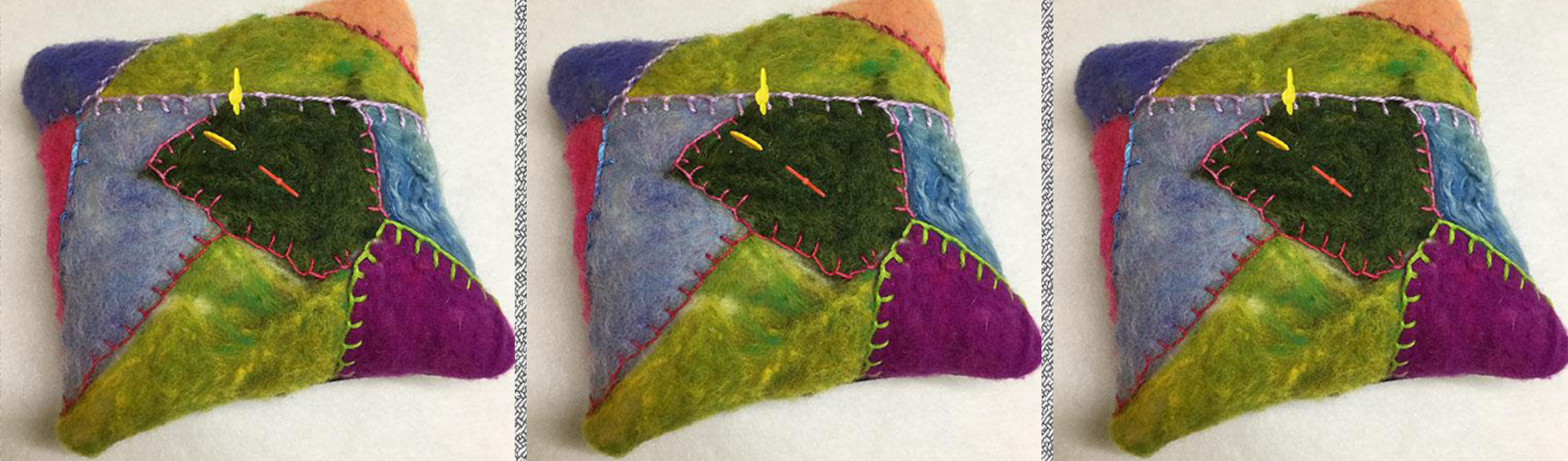 Barb has combined three techniques in this wonderfully creative project: needle felting, crazy quilting and simple embroidery. During class at the Original Sewing and Quilt EXPO in Atlanta on March 10th from 6pm to 8pm you’ll have fun with the art of needle felting to begin. Follow that with learning the hand-embroidery stitch that delivers dimensional pop as you complete the detailed pincushion top.